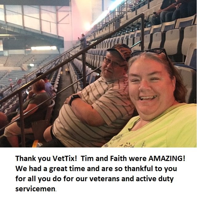 Thank you so much for the night out with Tim McGraw and Faith Hill! We love using Vet Tix for all of our concert experiences! Thank you to Messina Touring Group LLC for donating the tickets to us! You definitely made our dream come true!