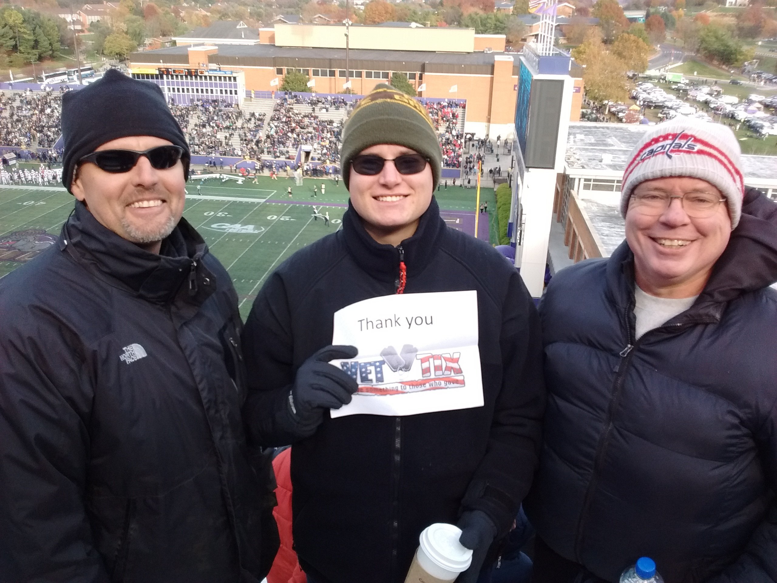 Thanks VetTix! Great game.....cold! Awesome time especially since our youngest will be going to JMU next year! Go Dukes!