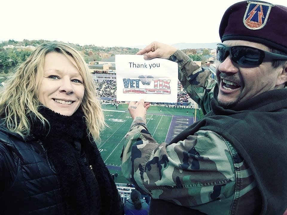 Thank you JMU for the tickets and your support of our veterans. You made it possible for my wife and I to experience an awesome game on Veterans Day, and you WON. GO DUKES.
