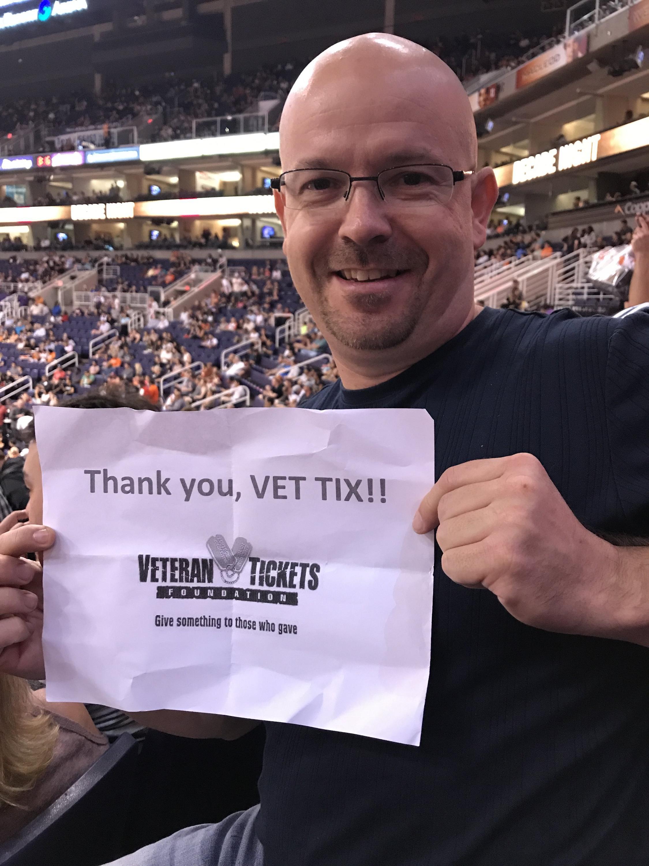 Thank you vet tix and the sponsors for the tickets to the suns game. my boys and I really enjoyed the game. Unfortunately we left our sign at home for the picture.