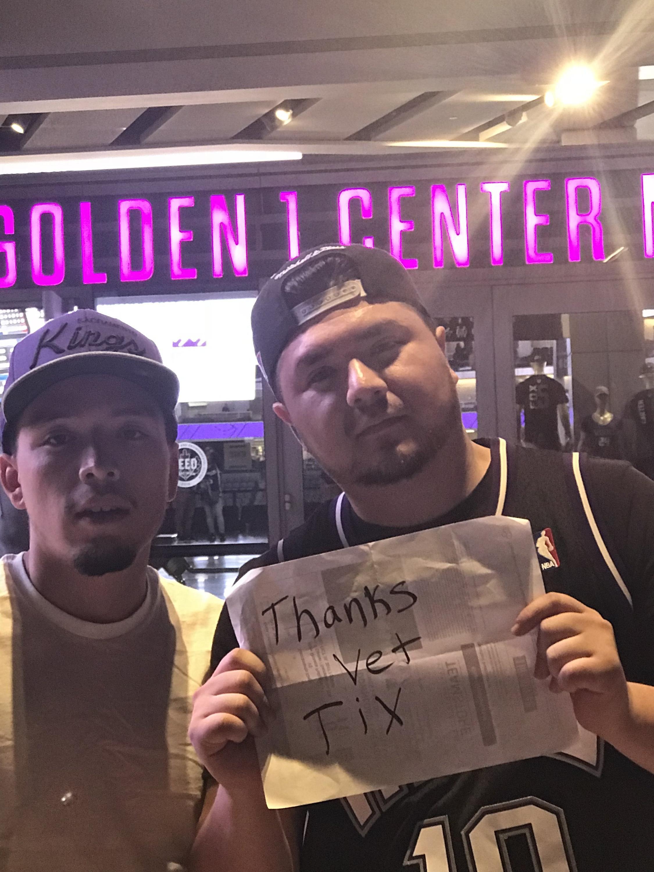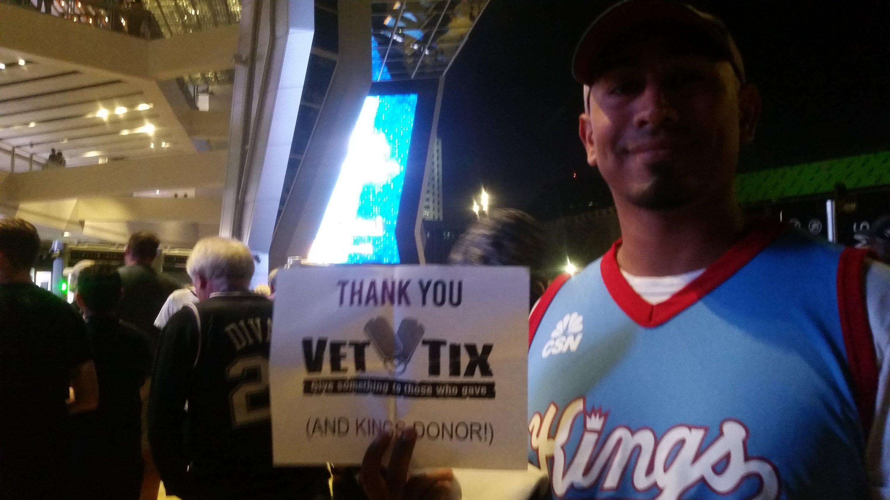 Thank you Sac town Kings. So many tickets donated all around to this cause! Everyone sitting around me was a fellow vet and we were able to share war stories. Pretty awesome of you guys. Thanks again.