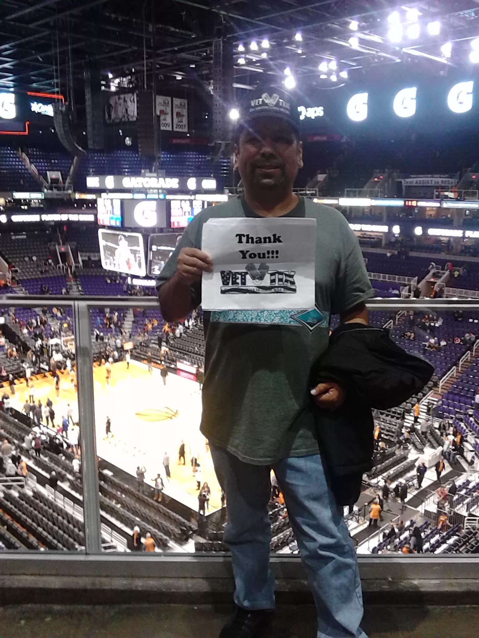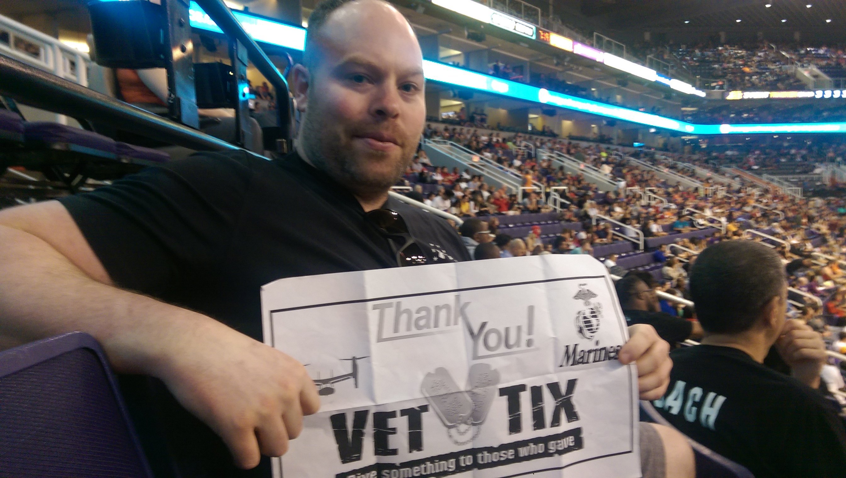 Thank you Phx Suns and Vet Tix for the tickets. The seats were awesome. We had a great time. What a beautiful win for our home team.. Thank you all for what you do for us veterans.