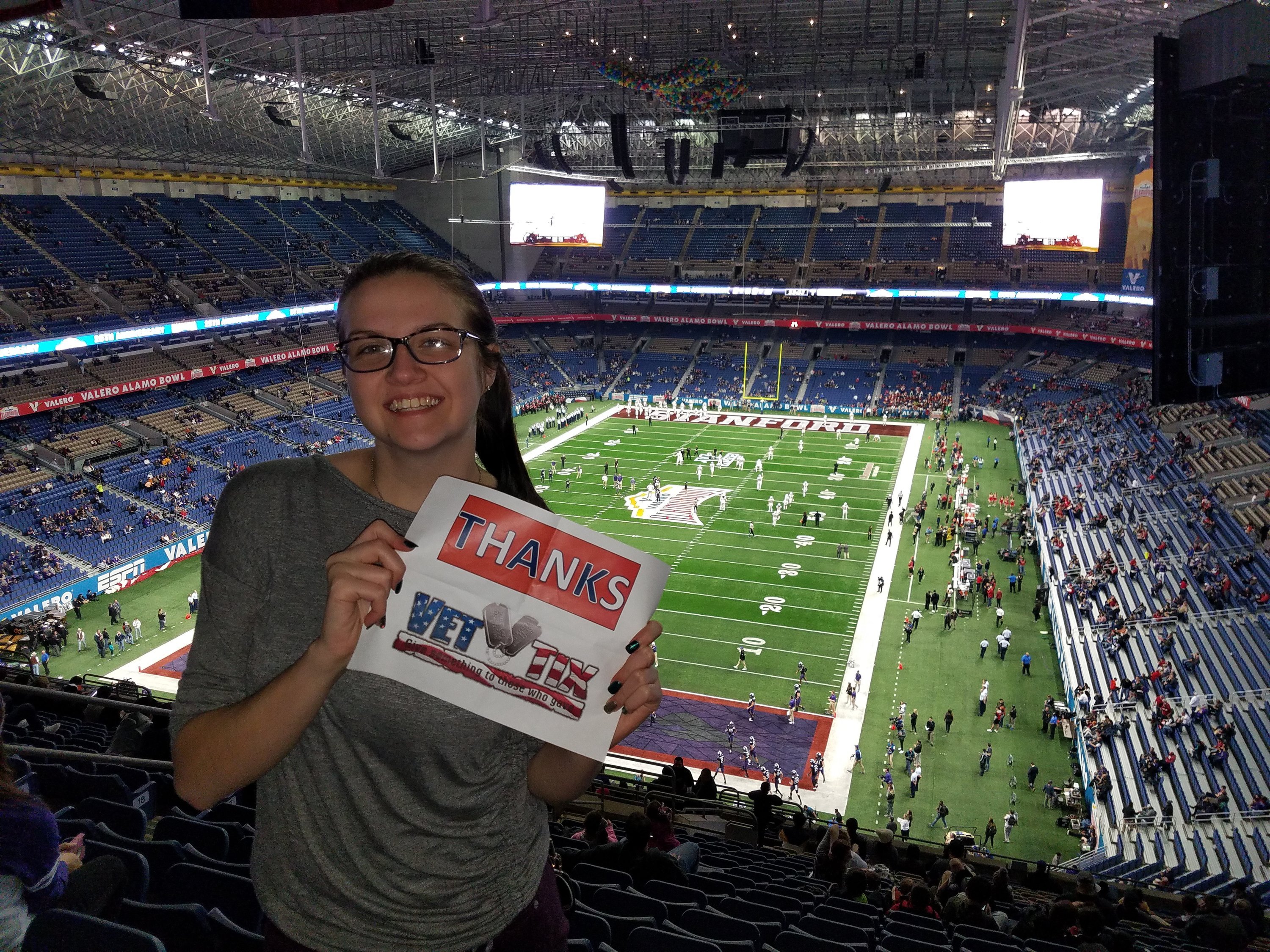 Thank you Vet Tix we had a great time at the Valero Alamo Bowl. You made the evening special for me and my family.