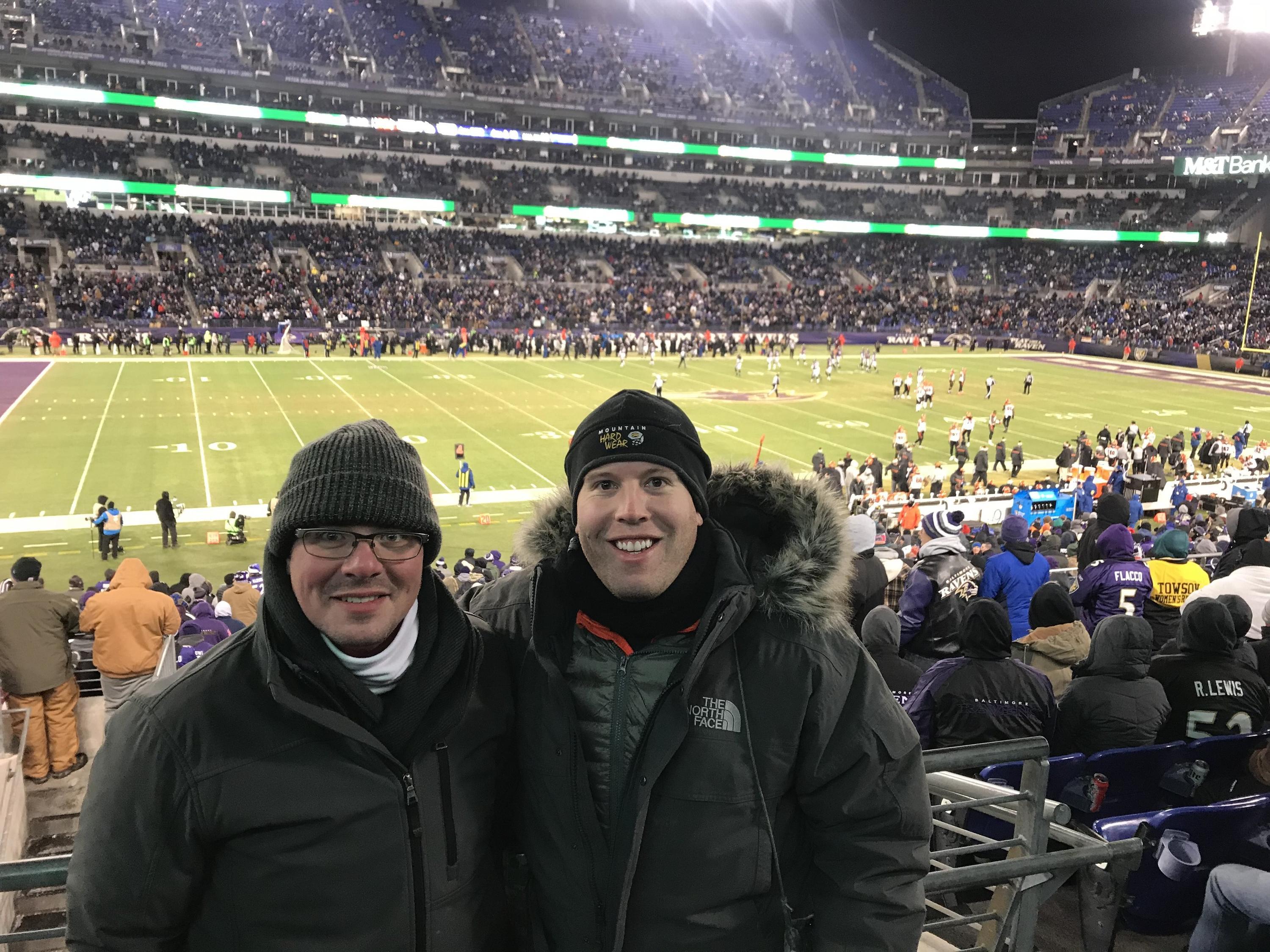 What a game ! The coldest game in Ravens history and I was there. Thanks NFL Baltimore Ravens . We had a great time . My Ravens lost but I was there to witness this very important game. Thankyou Baltimore Ravens for the opportunity of a lifetime.