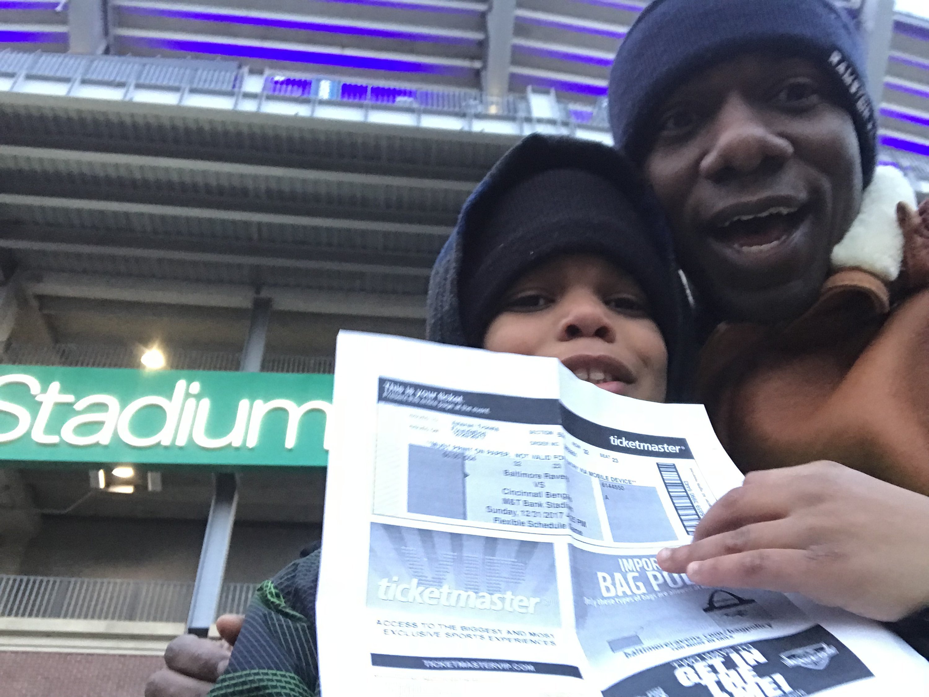 Thank you again VetTix for the tickets to go see the Baltimore Ravens final game of the season. Had a great time making memories with my son.
