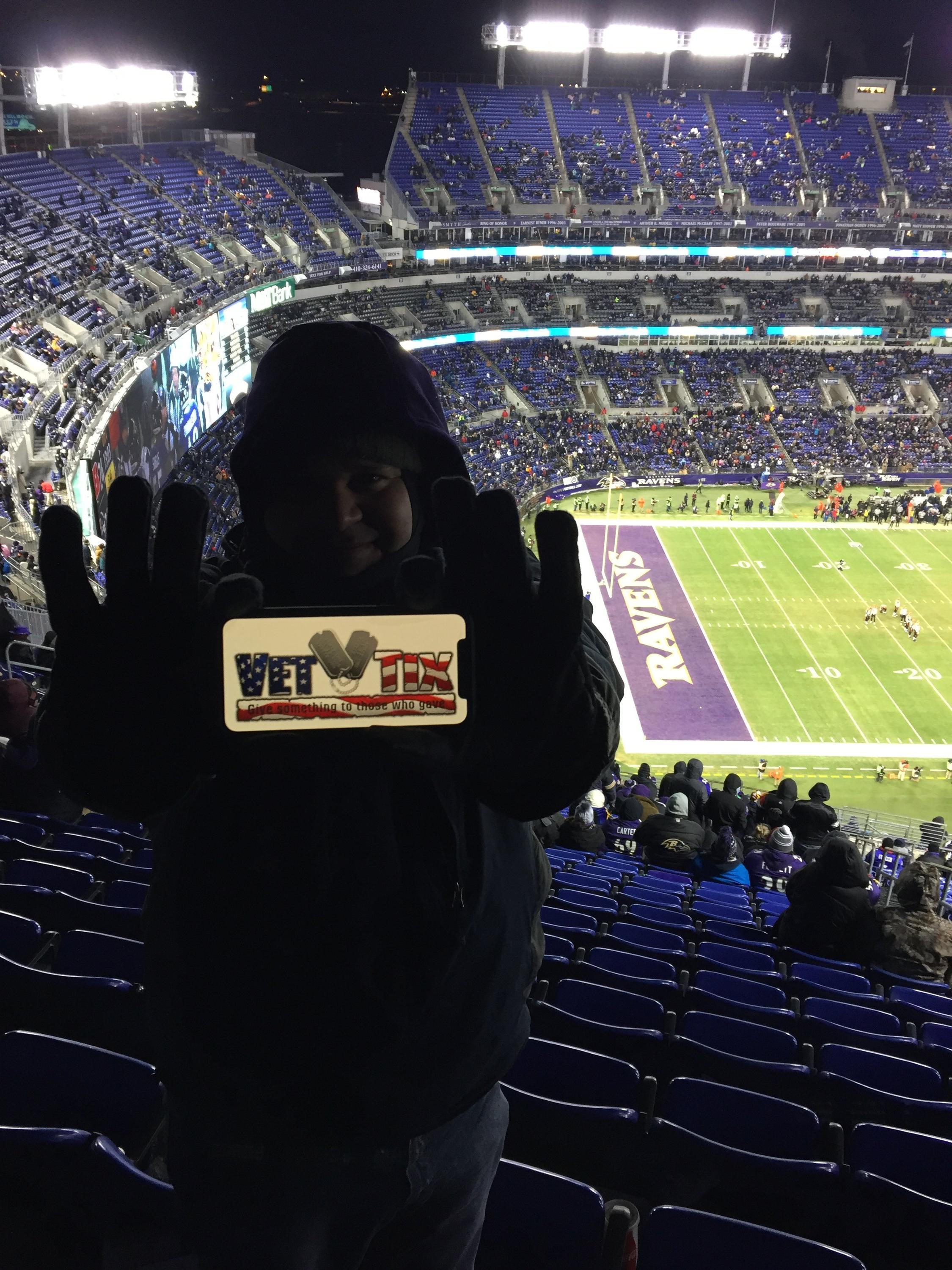 Thank you VetTix for letting me catch the last Ravens season game. We had a great time!