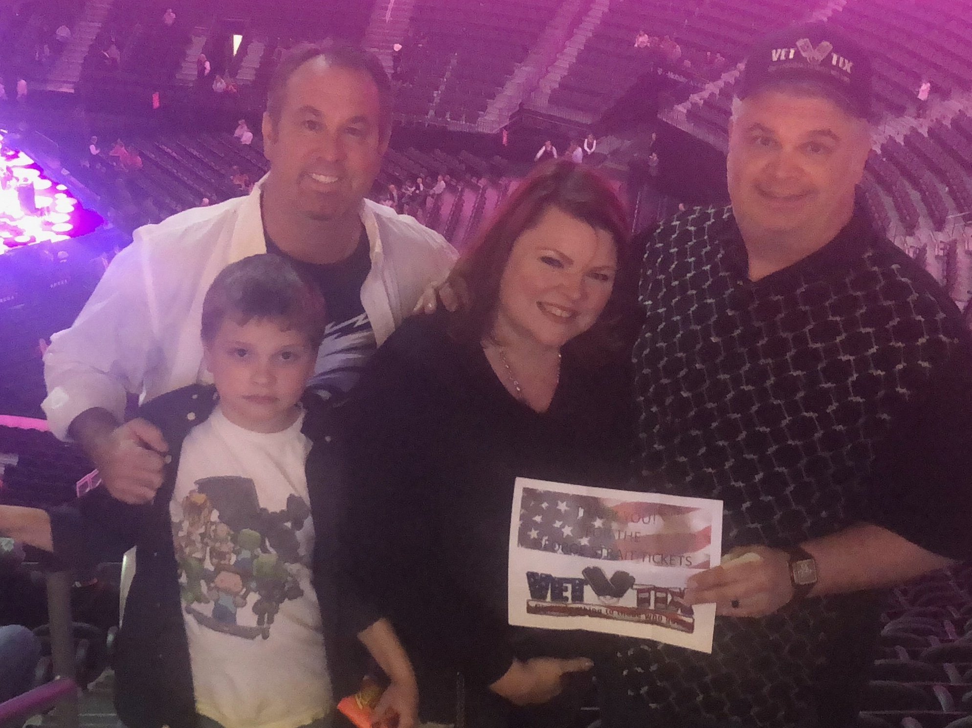 Just wanted to5o say thank you to Messina Touring Group for the donated tickets. The family and I had a great evening with a superb "superset" by George Strait and band. Such an awesome experience for everyone and we appreciate the continued support to ask our fellow vets and active duty! Sorry the VetTix sign is a little blurry..