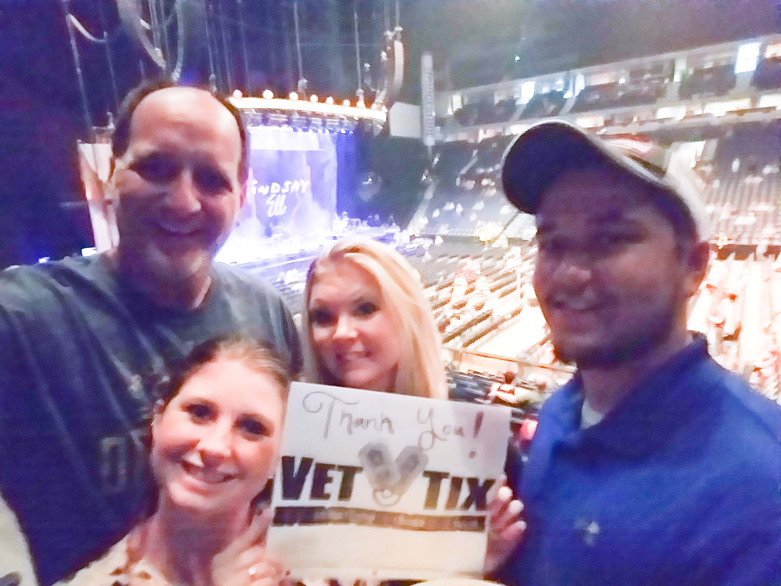 I would like to thank AEG for the generous donation of tickets to Sugarland. It's hard to find things to do that our children and us both like. This concert was perfect and the seats were amazing. It was a night to remember. Thank you also to VetTix for making this all possible.