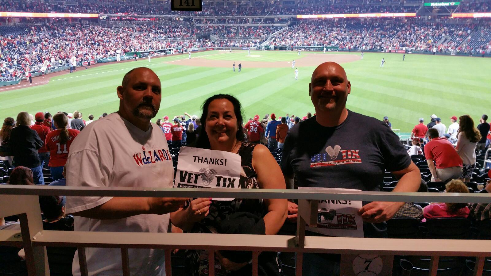 Thank you Vet Tix and the Washington Nationals for your generous donation of tickets for me and my family to attend the Nats vs Marlins game last night. Even though the Nats didn't win, we had a good time. It was also my sister-in-law's first time to the Stadium. Thank you so much for your support of Veterans!