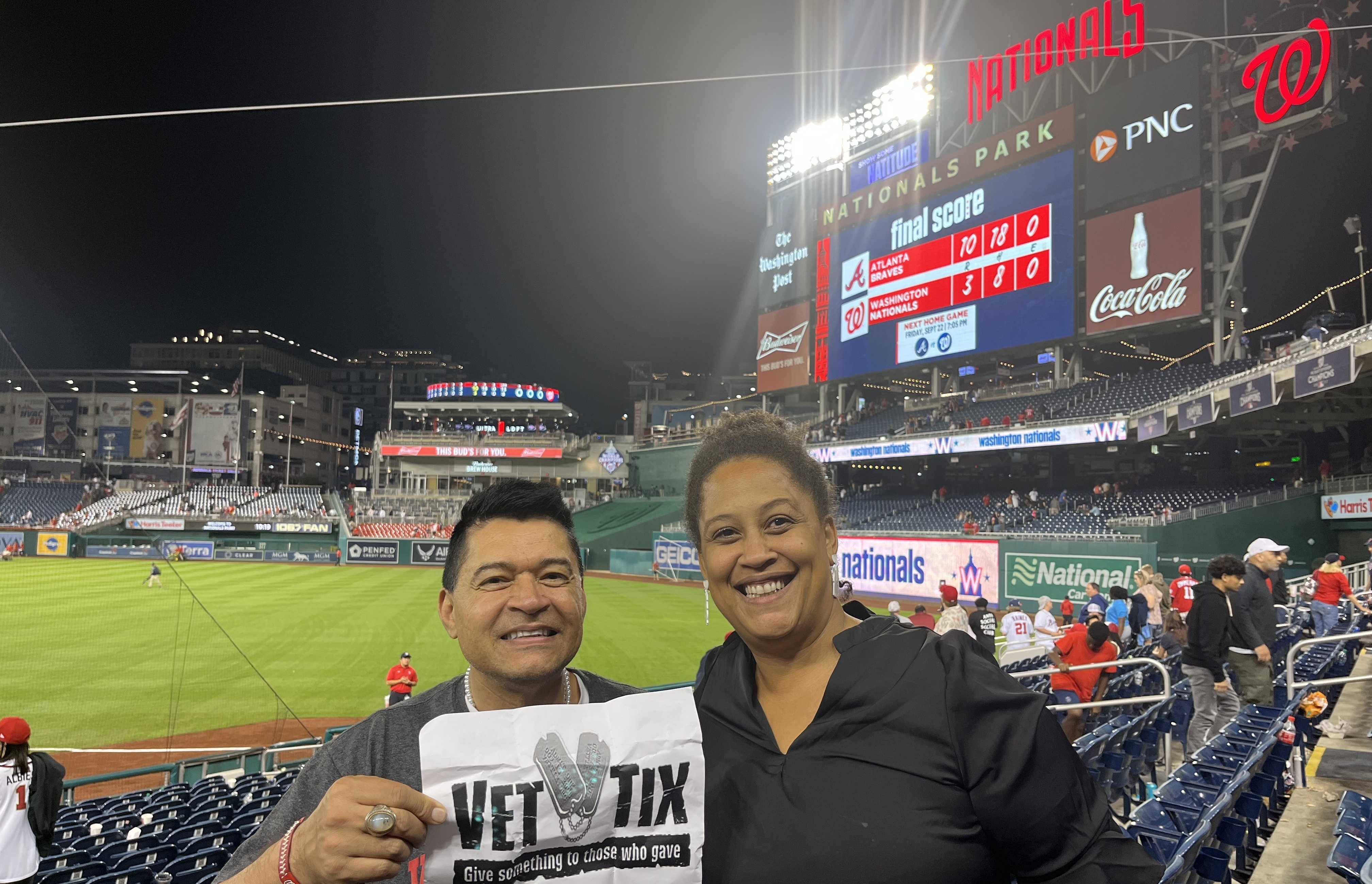 A giant thank you to the Washington Nationals and Vettix for being able to provide tickets to the Nationals vs. Braves game. Though we lost, we had a great time and always here to support the Nats. The military community appreciates your generosity